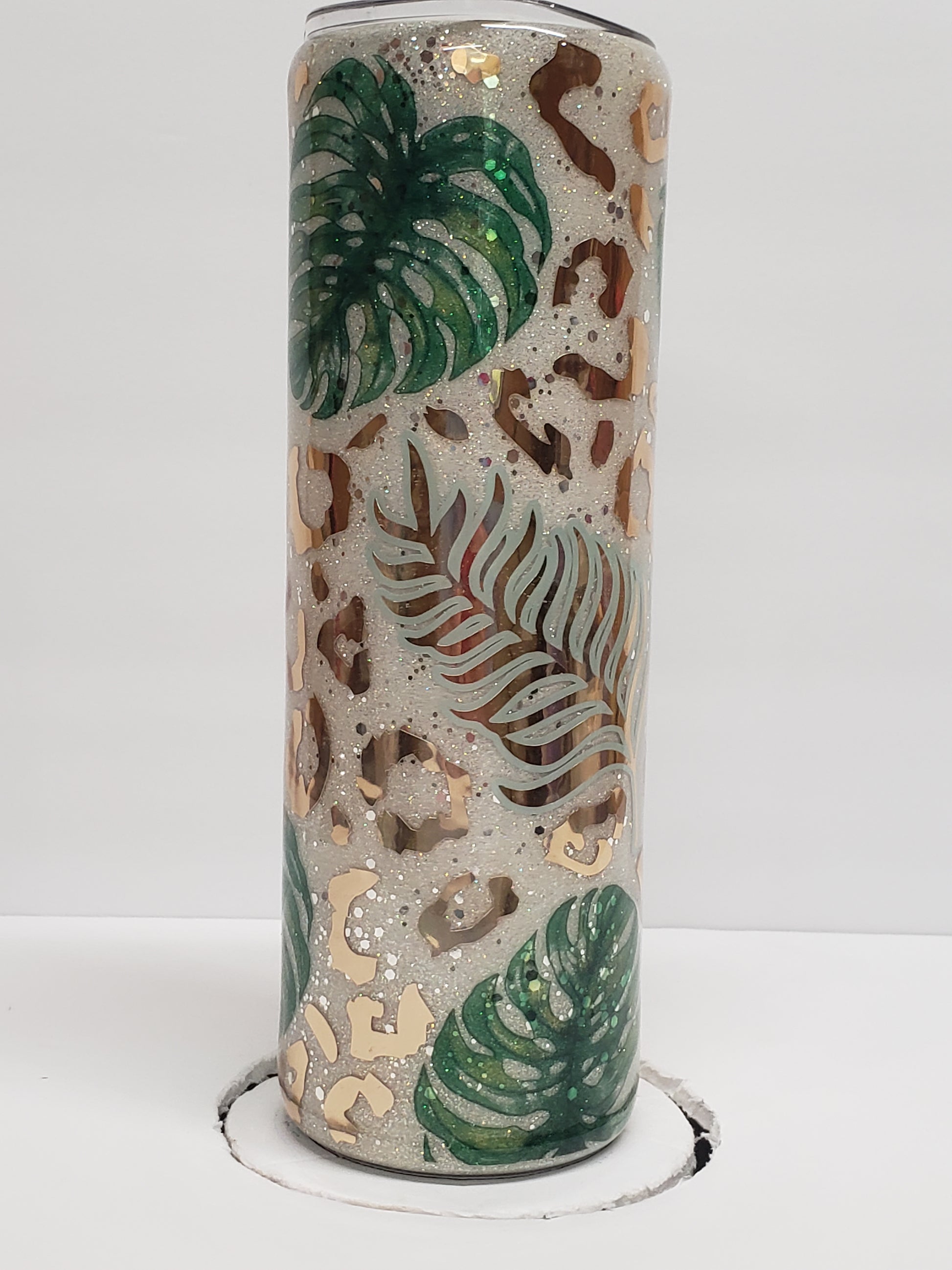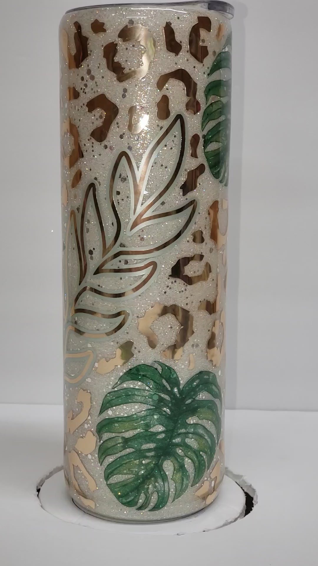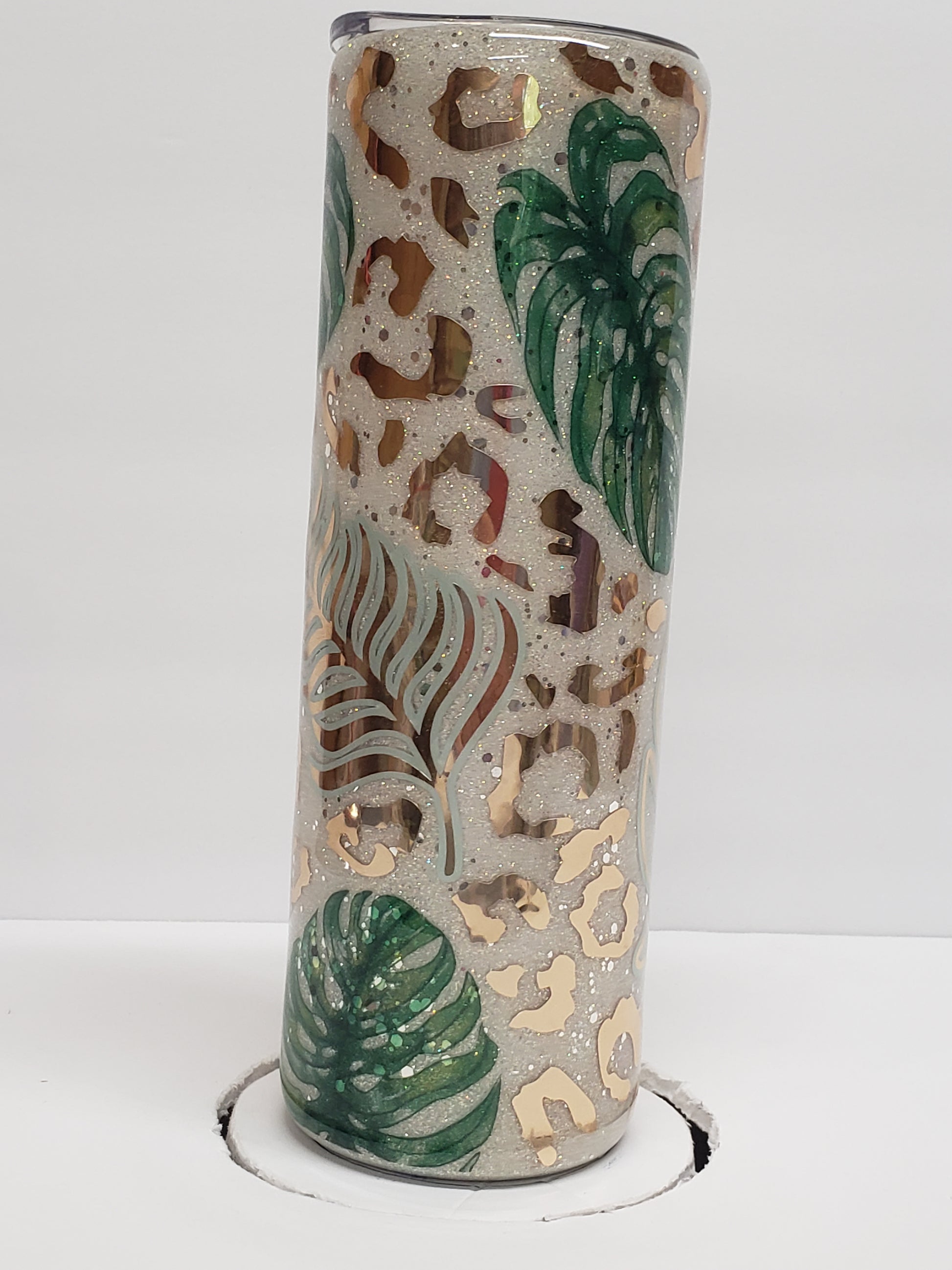 This 30oz epoxy tumbler is a stylish addition to your drinking collection. An eye-catching jungle leopard print, combined with a "she said yes" glitter background, ensure this cup will be the envy of all your friends. Includes straw.